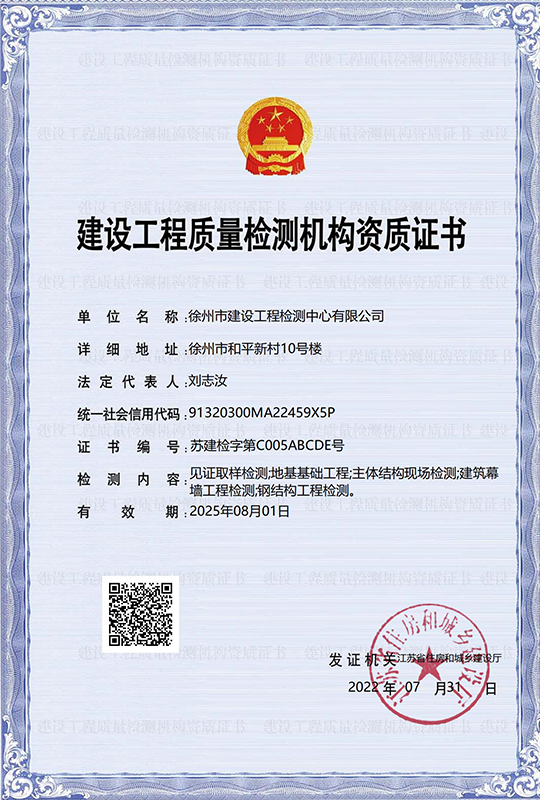 徐州市建設工程檢測中心有限公司(以下簡稱徐建檢測公司)是徐州市產城發展集團有限公司(以下簡稱產城集團)的全資子公司。徐建檢測公司前身為徐州市建設工程檢測中心,2018年事轉企改制,2020年4月,完成轉企改制資產劃轉工作。 徐建檢測公司是集檢測、檢驗、鑒定、咨詢等技術服務為一體、具有獨立法人資質的綜合性第三方服務機構。公司主要從事建設工程領域相關工程質量檢測及技術咨詢服務,業務覆蓋地基基礎、建筑材料、建筑結構、鋼結構工程、市政工程、綠色建筑節能工程、建筑安全與施工設備、建筑防水、建筑水電、裝飾裝修、建筑物防雷、室內環境、房屋安全鑒定、城市軌道交通工程等專業領域。......